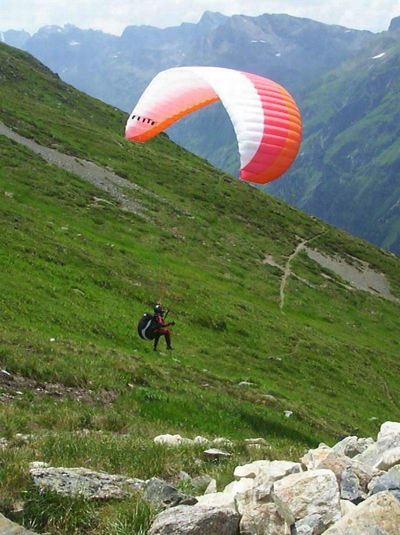 Paragleiter starten Im Rücken geht es noch 400m hoch, vorn 600m nach